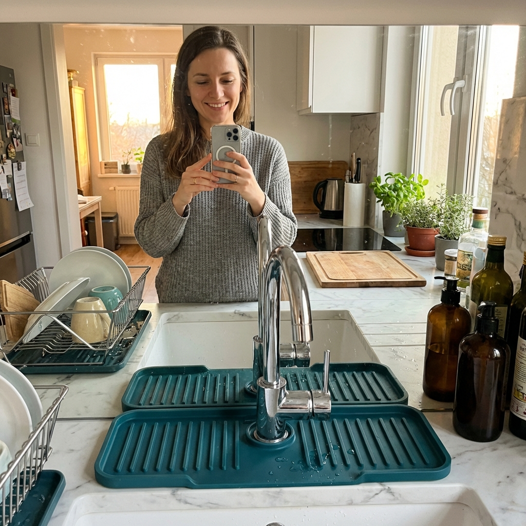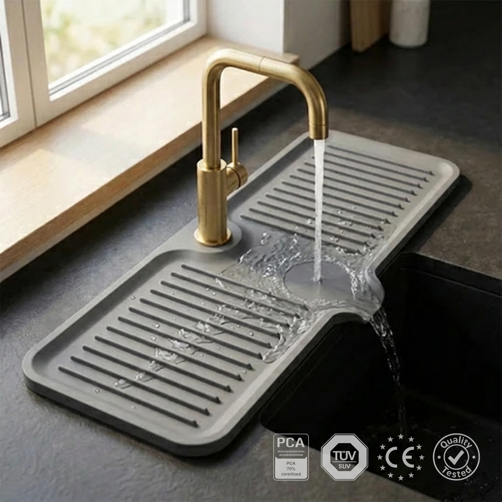 Ich dachte, es wäre nur ein weiteres billiges Produkt aus China, aber ich habe mich geirrt. Die Matte ist aus hochwertigem Silikon gefertigt, und ich bin endlich das Problem mit der nassen Arbeitsplatte los! Ich kann sie jedem empfehlen.